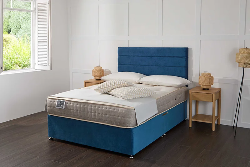 The divan base can be upholstered in over 40 premium fabrics and colours, organised into easy-to-choose collections such as Glitz, Azzure, Naples, Velvet, Wool Effect, Chanille, Linoso and Weave. Popular options include Glitz Black, Glitz Navy, Glitz Silver, Azzure Grey, Cream Naples, Naples Slate, Navy Velvet, Marine Wool Effect, Oatmeal Chanille, Duck Egg Linoso and Walnut Weave – so it’s simple to create a look that feels made for your room.